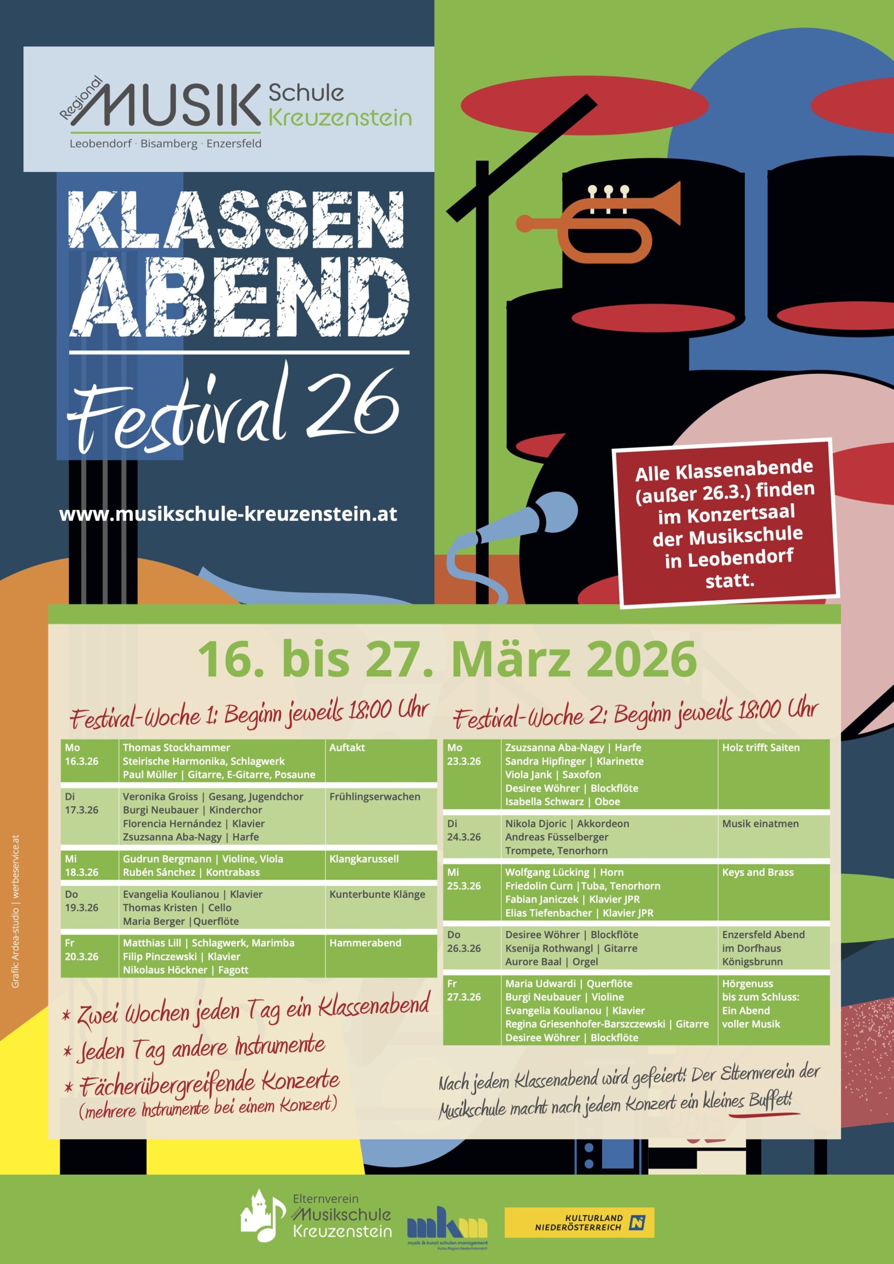 Mo., 16. März 2026 – Fr., 27. März 2026 – 18:00 Uhr – Zwei Wochen jeden Tag ein Klassenabend