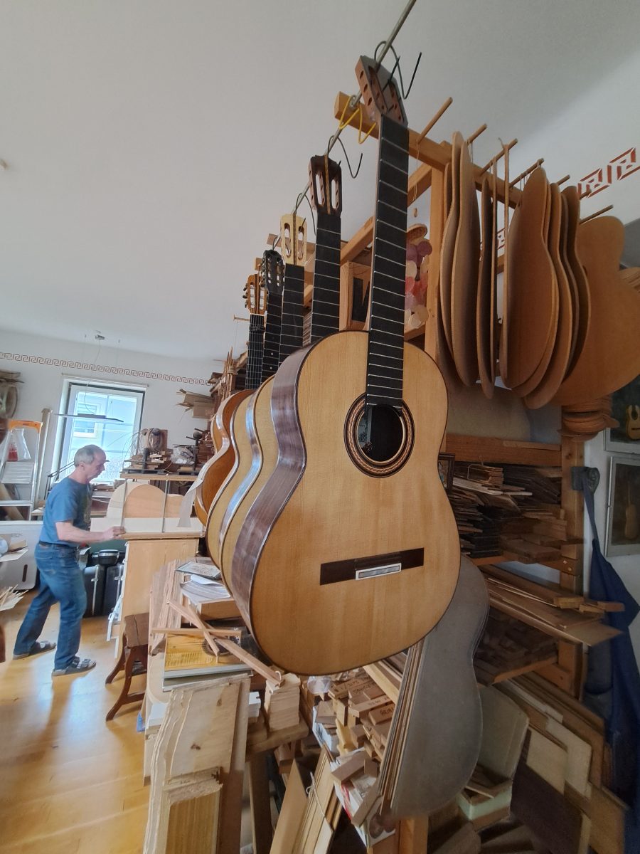 In dessen Werkstatt erfuhren wir, dass es rund 100 Stunden dauert bis aus einem Stück Holz ein Musikinstrument entsteht. Mit interessanten Details über die Konstruktion, die Verwendung von verschiedenen Hölzern und die Raffinesse in der Ausführung konnten wir einen guten Einblick erhalten, worauf es beim Gitarrenbau ankommt, um eine außergewöhnliche Klangqualität zu erhalten. Bei all den Details drang vor allem die Hingabe und Begeisterung von Tobias Braun durch.