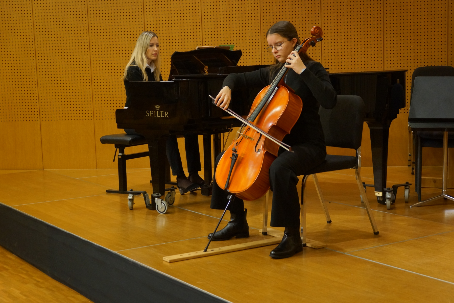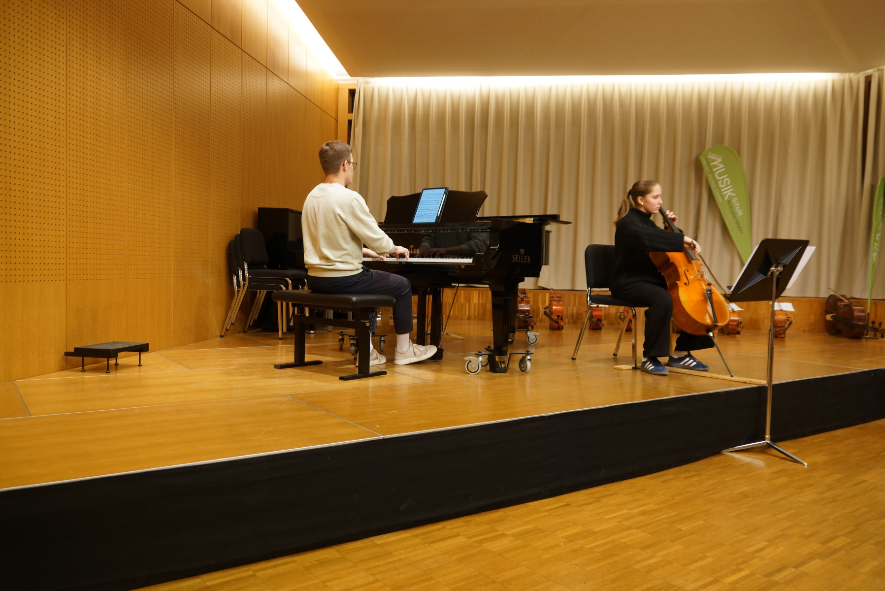 Im Konzertsaal Leobendorf zeigten die Klassen Evangelia Koulianou (Klavier) und Thomas Kristen (Violoncello) ihr Können – mit feinen Klavier-